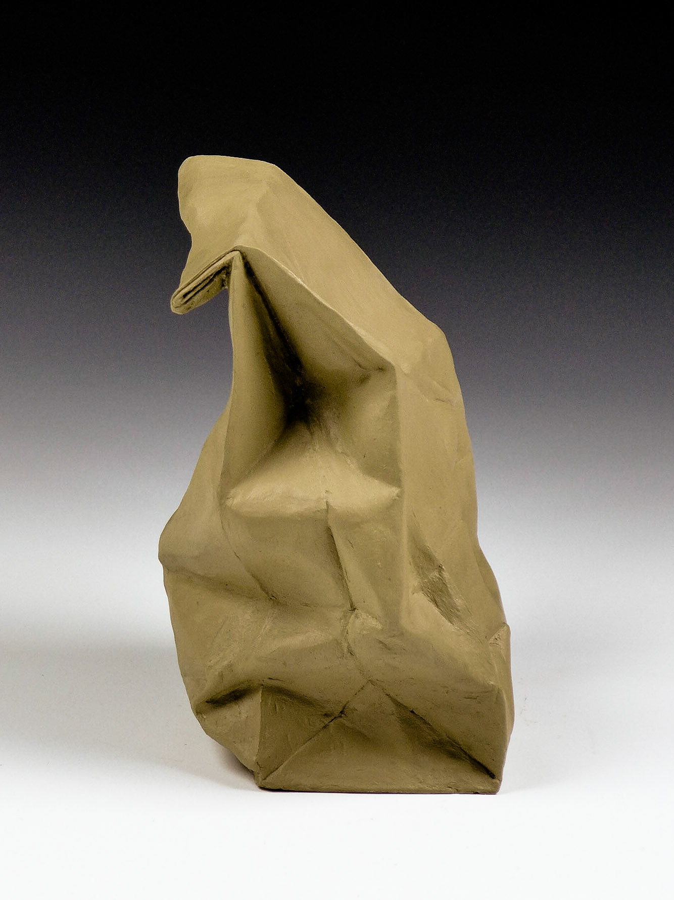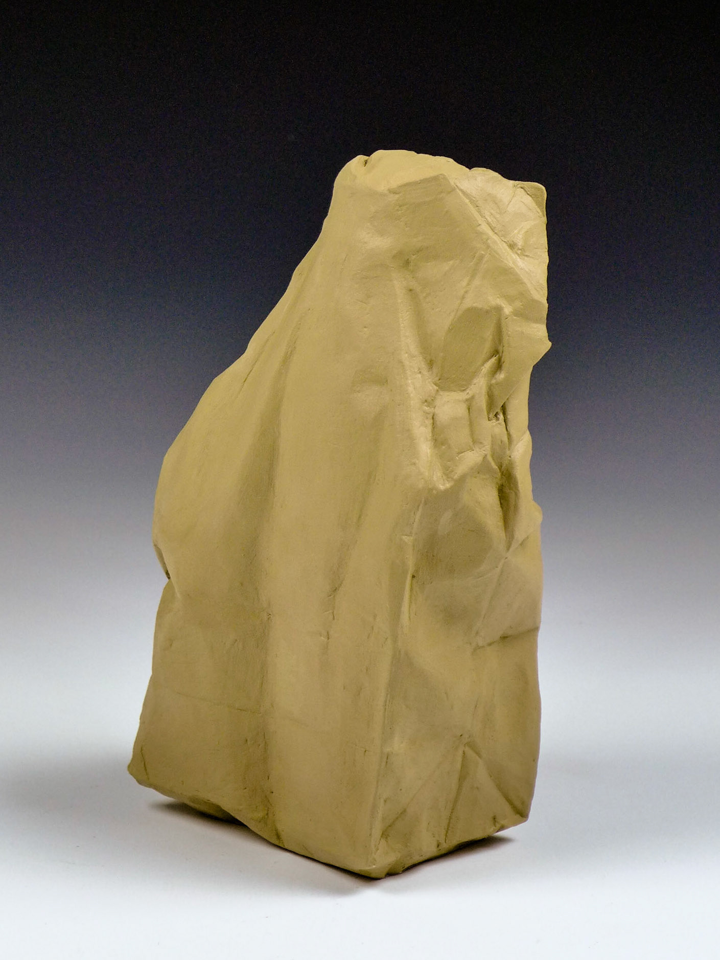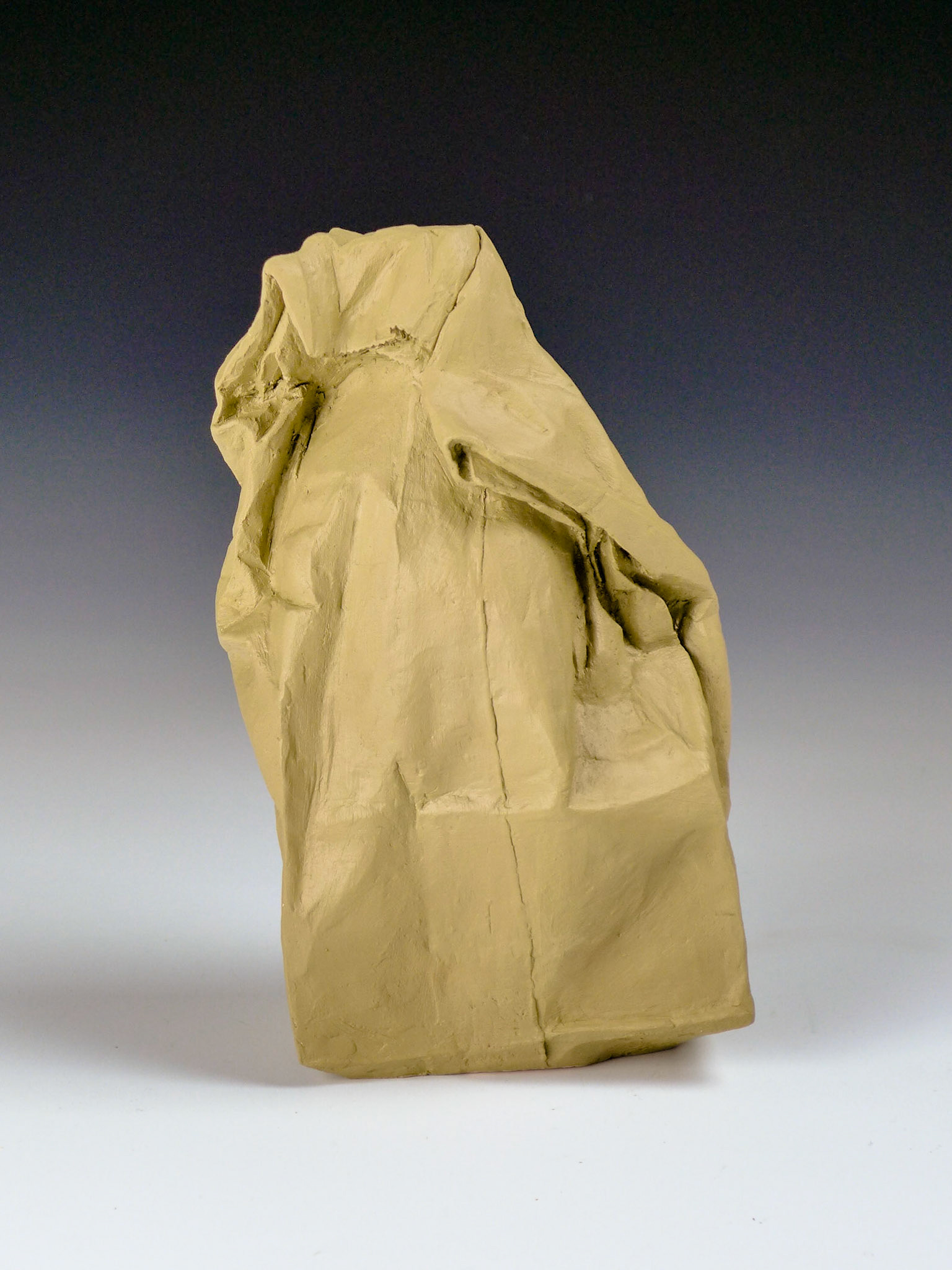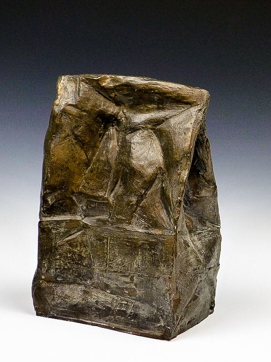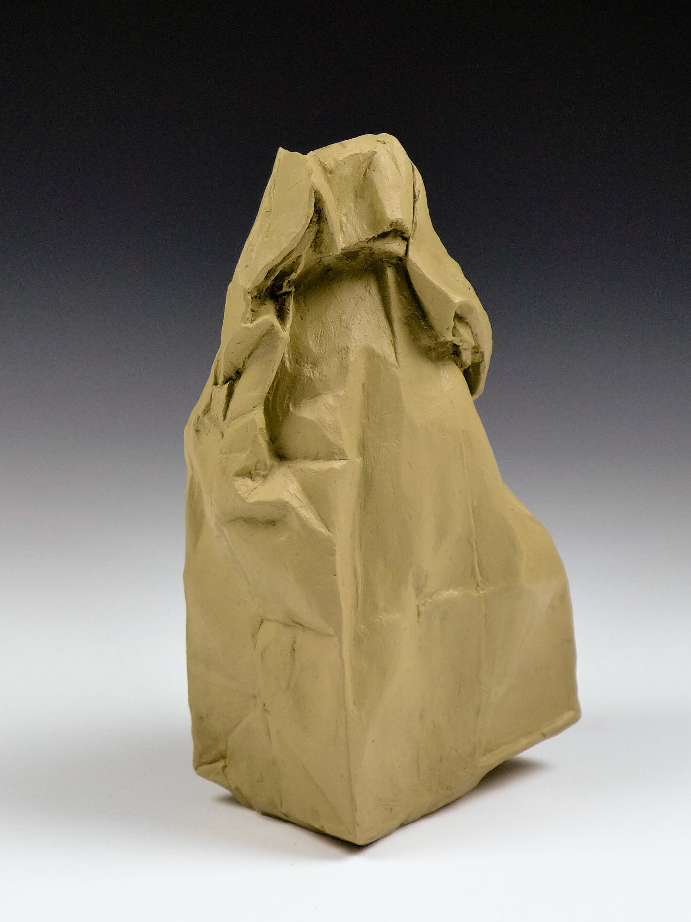 This is an ongoing series examining the hard and soft edges of lunch bags rendered in clay. These trompe l'oeil paper bags have been bisqued fired then given a patina.