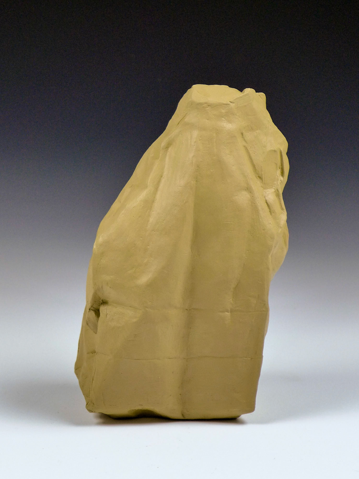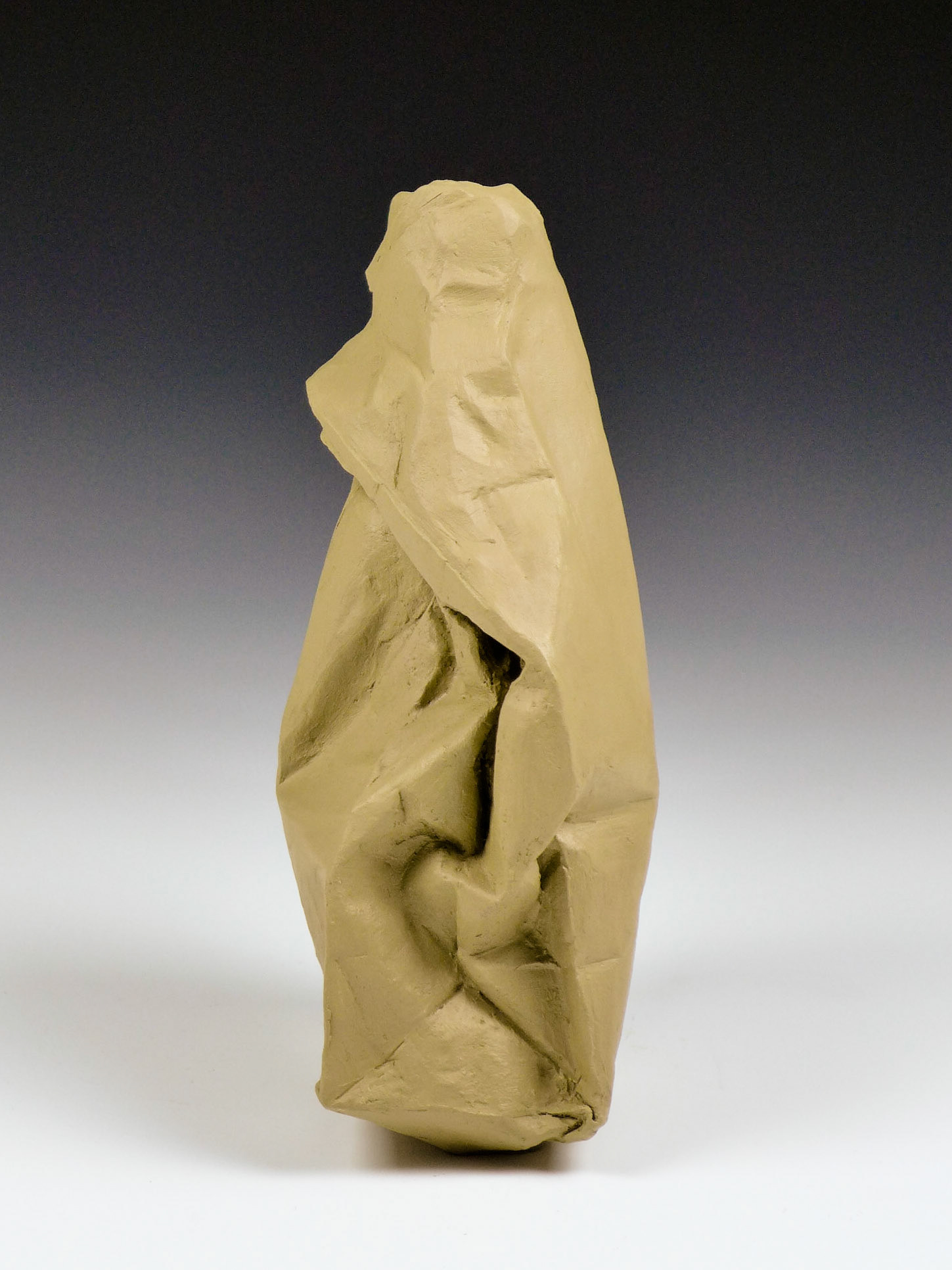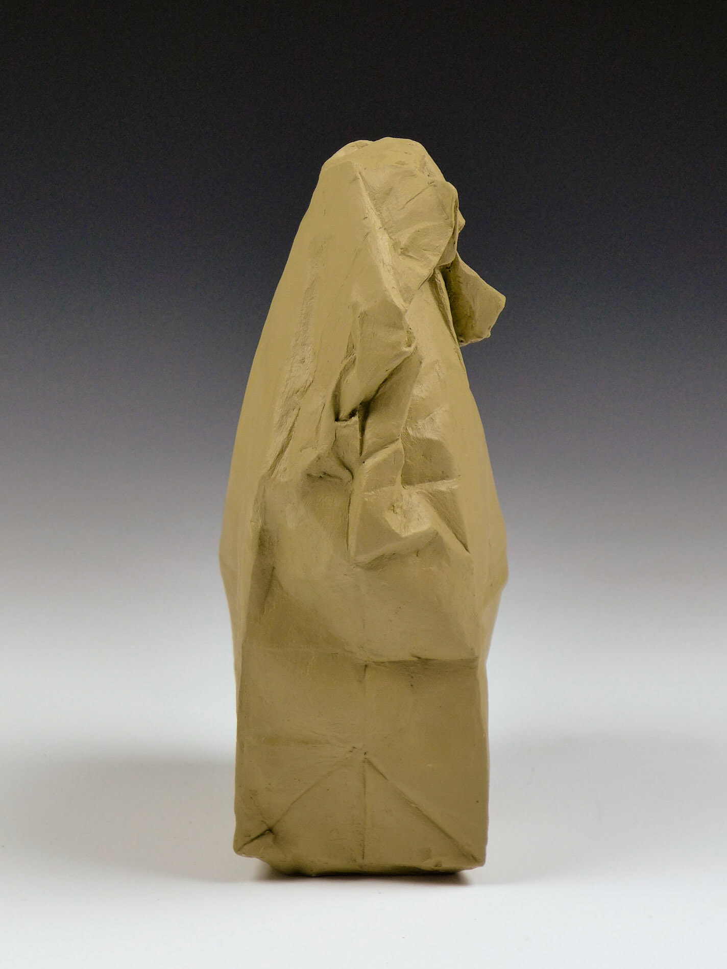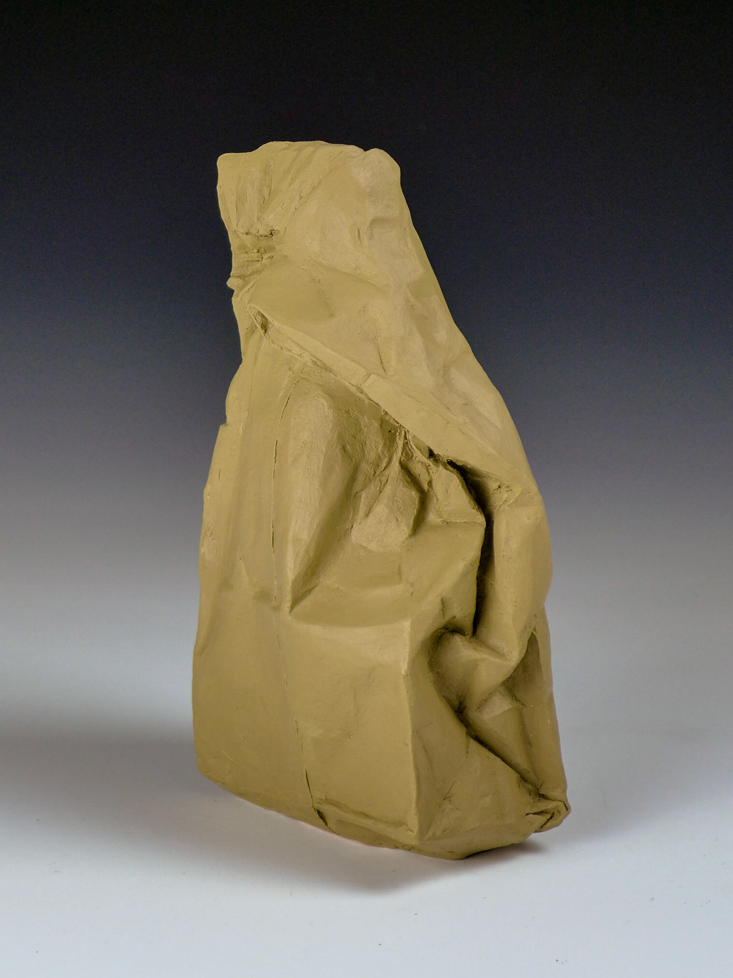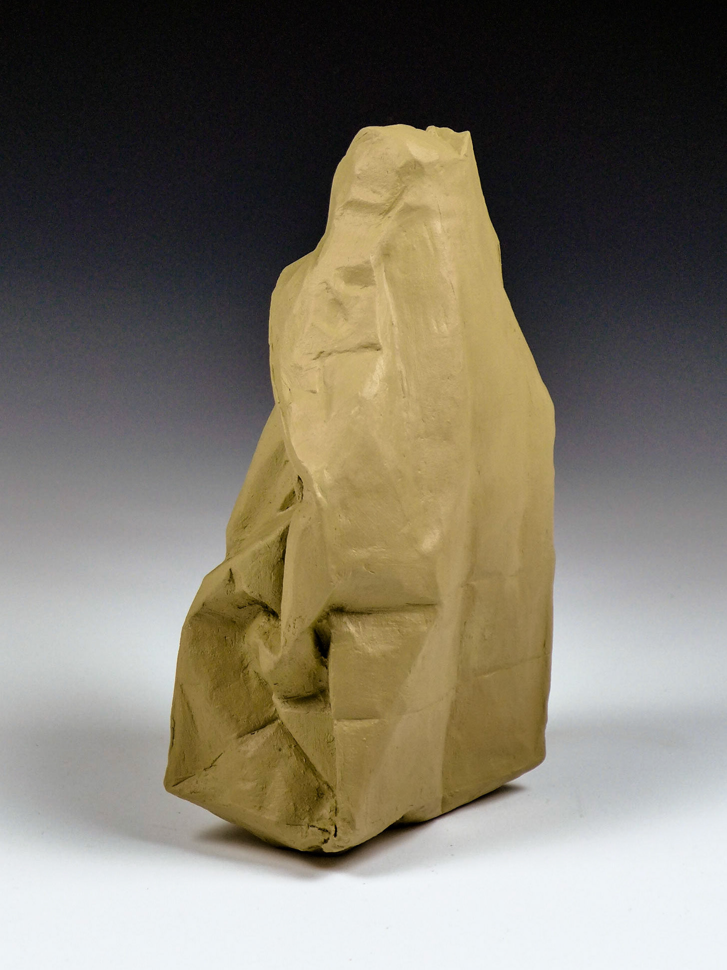 This is an ongoing series examining the hard and soft edges of lunch bags rendered in clay. These trompe l'oeil paper bags have been bisqued fired then given a patina.